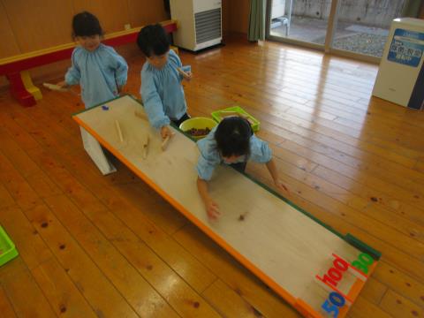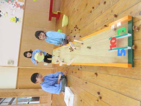 木の実を使って遊んだり、木の実にちなんだ製作遊びをしました。楽しい時間が過ごせました