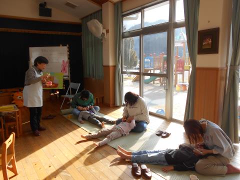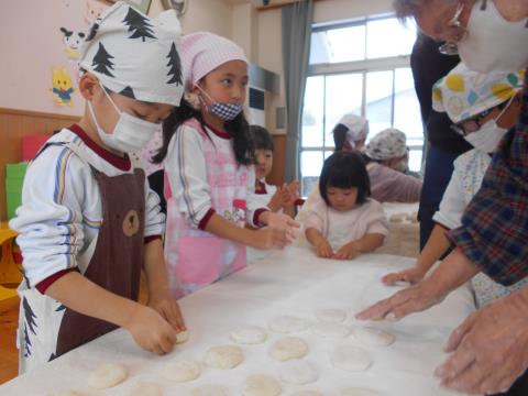 下谷の方々にお手伝いいただき、餅つきをしました!!普段なかなか経験できない杵と臼を使った餅つき!「おもたいね」「いいにおいするね」と子どもたちも楽しそうな様子でした。
