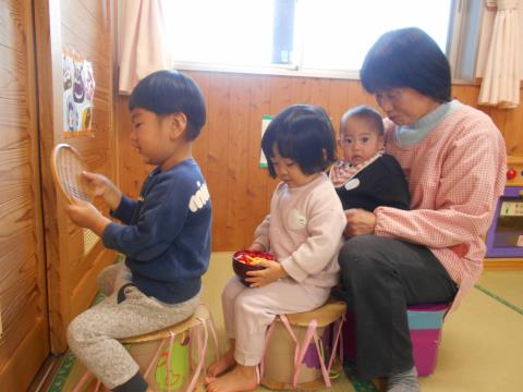 木の実を使って遊んだり、木の実にちなんだ製作遊びをしました。楽しい時間が過ごせました