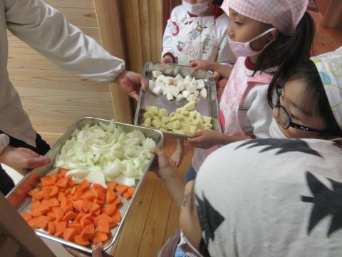 盛りだくさんのメニューでしたが、子どもたちは張り切って朝から野菜を切ったり、焼き芋の準備をしたり。。。出来上がったカレーや焼き芋に「う~~~ん!おいしいね」と満面の笑みがこぼれました(^^♪