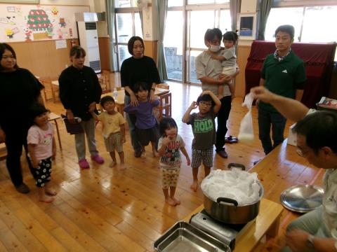 下谷地区の方にお世話になり、お餅をつきました!力いっぱい「よいしょ~~!」と掛け声をかけてつきました!とってもやわらかくておいしいお餅が完成しました!