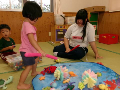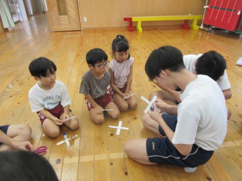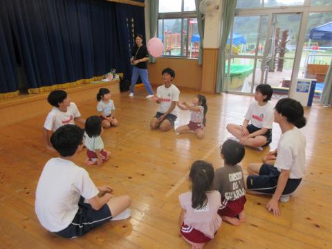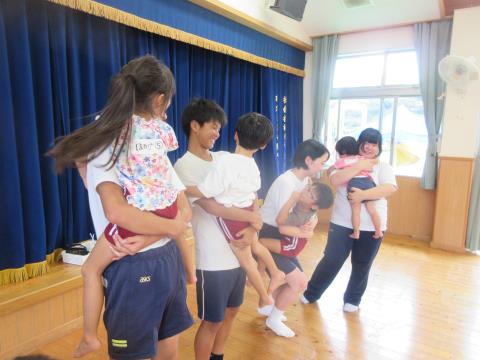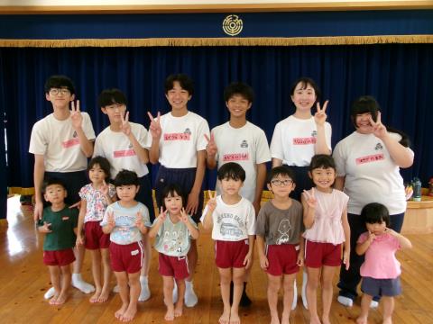 弥栄中学校の3年生が来られ、交流しました。はじめは緊張気味だった子どもたちもすぐに打ち解けて楽しい時間を過ごすことができました
