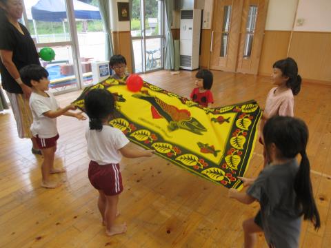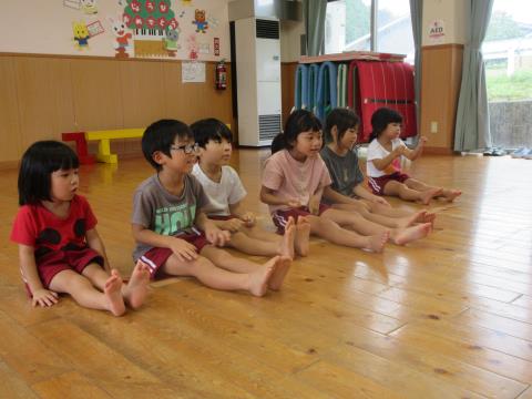 旭なごみ体操クラブから、先生に来ていただき運動遊びを行いました。長い時間でしたがとても集中して取り組んでいました。子どもたちのわくわくした表情、「せんせい、どう?すごいでしょ?」と言わんばかりの目線(*^_^*)(笑)楽しい活動となりました。